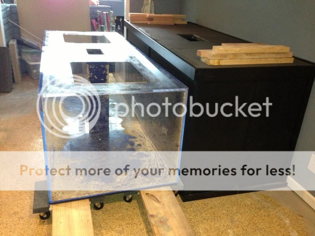 The wife & I had been thinking of upgrading to a larger tank that would replace our current 92G Corner tank. So while thinking of tanks in the 300G range she came across a setup which we opted to jump on. I had to rent a Uhaul truck to pick it up and once we got it home it sat in our garage while so we could put together a game plan and finished a construction project in our basement (Yes, we live in Texas and have a basement). We selected the basement as the location because the temperature is more consistent even in the summer and the area is next to the garage where we will be able to set up the sump/filtration/pumps as well as the ATO tanks.