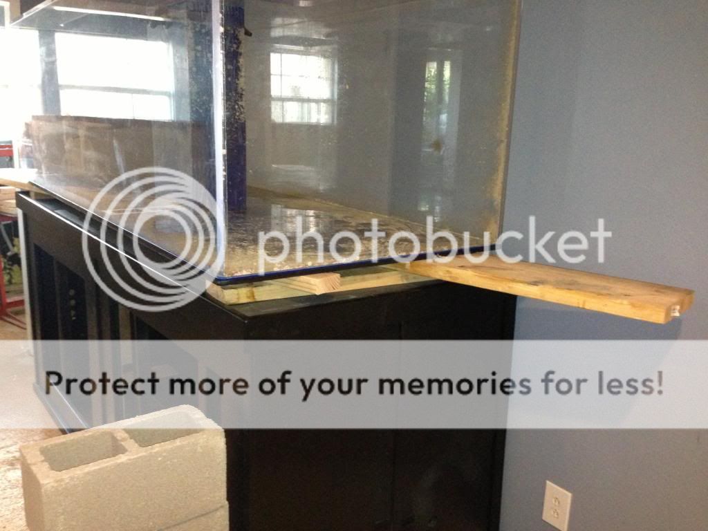 alt="">It will be installed inside this. This is the original wood stand. This is all the structure that existed when it was built. No diagnal or horizontal bracing the length of the tank. No 4x4 structure or even 2x4. I still can’t believe it didn’t collapse. One cool part is the stand comes apart into 3 pieces. The original builder cut it the length of the tank so it would fit through a standard house door. The top is 2 sheets of ¾” ply wood.
